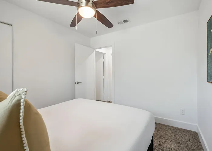 A propriedade no bairro South Austin em Austin está situada a uma distância de 10 minutos de carro de Museu de História Bob Bullock Texas State e a aproximadamente 25 minutos a pé dos locais comerciais como o Centro de Convenções de Austin. Os hóspedes também podem visitar o Capitólio do Estado do Texas, localizado a uma pequena distância desta casa de férias, ou ver Whip in a 550 metros de distância. Os locais de interesse educacional situados a uma distância de 2.5 km da The Orange Door - Unit B - Travis Heights Duplex Vila incluem a Universidade de St. Edward's.